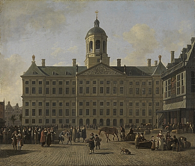 Der Damplatz zu Amsterdam mit dem Rathaus und der Waage |