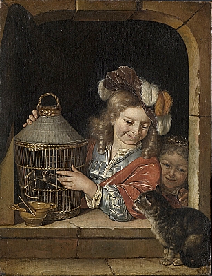 »[…] un jeune enfant qui joue avec un moineau & un chat, par Eglon Vander Neer […].«